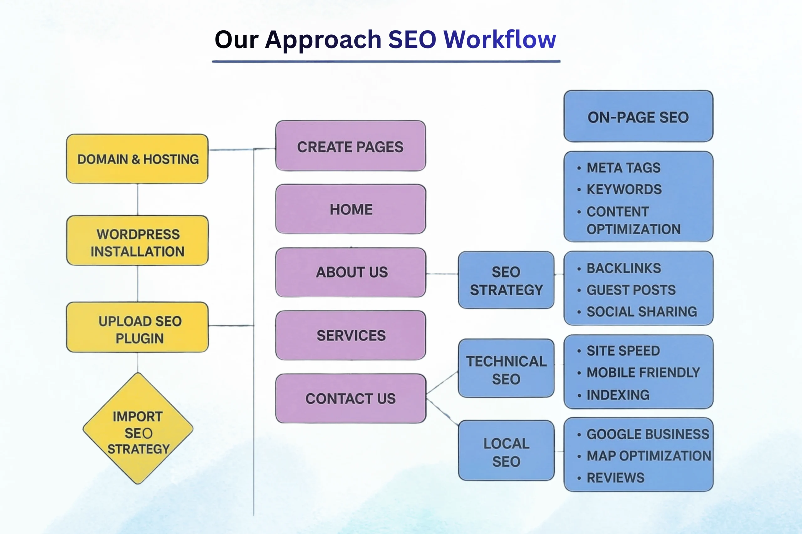 Our Efficient Workflow in 5 Steps ensures streamlined SEO-Development & Marketing solutions. We start by understanding your needs, then plan the project, design intuitive interfaces, build robust systems, and thoroughly test.